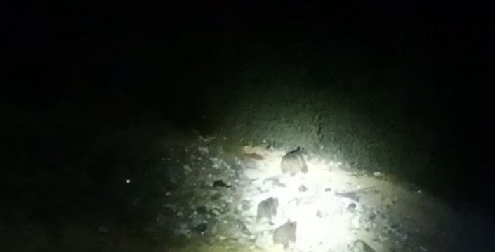 Şantiye görevlileri, yol kenarına inen ayı ailesini el feneriyle aydınlatarak görüntüledi. Görevliler, ayı ailesiyle yol kenarında sık sık karşılaştıklarını ifade etti.