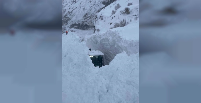 Çukurca ilçesi yolunda çığ temizleme çalışmaları aralıksız devam ediyor. Kar yağışının yer yer etkisini sürdürdüğü kentte, Karayolları ekipleri yol güvenliğini sağlamak için düşen çığlarla mücadele ediyor. Çalışmalar sırasında ekiplerin ani reflekslerle yeni çığ tehlikesine karşı kendilerini korumaya çalıştıkları görüldü. Temizlik çalışmaları sürerken, bazı iş makineleri ve araçların çığ enkazı arasında adeta kaybolması dikkat çekti.