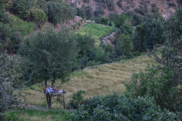 Nisanda ekmeye başladıkları ürünleri bu ayın sonunda hasat edeceğini bildiren Demiroğlu, "Yaban hayvanları tarlalara çok zarar veriyor. İçine girdiklerinde bir şey kalmıyor. Biz de domuz ve ayılara karşı nöbet tutuyoruz. Hayvanları korkutmak için hem tenekelere vurup ses çıkarıyoruz hem de bağırıyoruz. Burada en çok pirinç, buğday ve susam ekiliyor. Ürünlerimizin hepsi doğal. Yaklaşık 5 aydır bu nöbete başladım. 20 gün daha devam edeceğim."