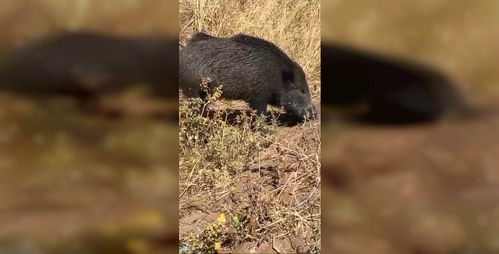 SERHED HABER - Elazığ’da bir vatandaş, kentin yüksek kesimlerinde göremediği domuzu merkeze bağlı Sütlüce köyünde gördü. Domuzun yanına yaklaşarak o anları kayda alan vatandaş, "Sen dağ bayır gez karşına bir tane çıkmasın ama Sütlüce köyünde senin karşına domuz çıksın. Şu an aramızda 3 metre ya var ya da yok. Ne acayip bir hayvanmış. Ağzına bak nasıl açıyor. Demek ki böyle kazıyor" ifadelerini kullandı. Vatandaşın cep telefonu ile kayda aldığı domuz bir süre sonra gözden kayboldu.