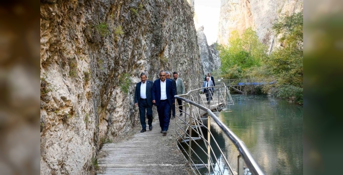 MASKİ Genel Müdürü Sinan Çeçen ise, "Şu an Darende Belediye Başkanımızla beraber kanyondayız. Sayın Başkanımızın da belirttiği gibi 2025 yatırım programını planlarken Darende merkezinde dönemsel olarak yaşanan su sıkıntısının çözümü noktasında bu kanyondaki suyun yeterli debiye sahip olduğunu gördük. Teknik ekibimizle birlikte fizibilite çalışmalarını tamamladık ve 2025 yatırım programı kapsamında hamdolsun işe başladık. Nasip olursa bir aya kadar da işletmeye almayı planlıyoruz" dedi.