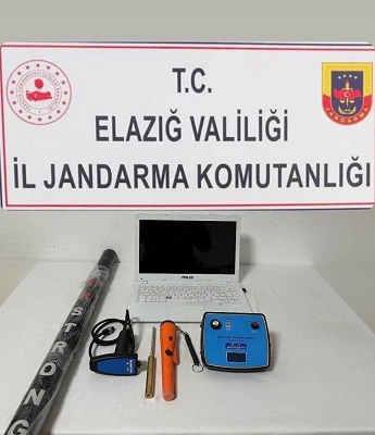 Olay, merkeze bağlı Güneyçayırı köyü kırsalında meydana geldi. Edinilen bilgiye göre, M.E., M.E., E.A. ve M.K. define aramak için alan arama cihazı ile keşif yaptıkları sırada İl Jandarma Komutanlığı Harput Jandarma Karakol Komutanlığı ekipleri tarafından malzemelerle birlikte suçüstü yakalandı.