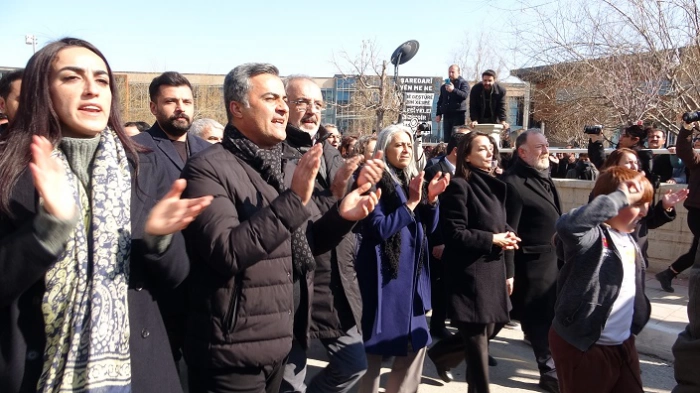 Burada bir konuşma yapan Eş Genel Başkanı Tülay Hatimoğulları, 1 Ekim'de MHP Genel Başkanı Devlet Bahçeli'nin Türk-Kürt kardeşliğinden bahseden mesajlar vermeye başladığını hatırlattı. Hatimoğulları, "Bizler DEM Parti olarak, Kürt halkı olarak, Türkiye halkları olarak bu ülkenin aydın demokratları olarak, bu ülkenin onurlu muhalefetini yürütenler olarak, onurlu bir barıştan yanayız. Onurlu bir diyalogdan yanayız ve bu diyalogun barışla taçlanmasından yanayız.