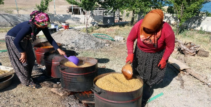 Vatandaşlardan Hatice Demir, "Her sene kışlık hazıkları olarak bulgur haşlıyoruz. Bulgurlarımızı ilk önce yıkıyoruz. Daha sonra kazanlarda kaynatıyoruz. Daha sonrada serip kurutuyoruz. Ardından değirmene gönderip öğütüyoruz” dedi.