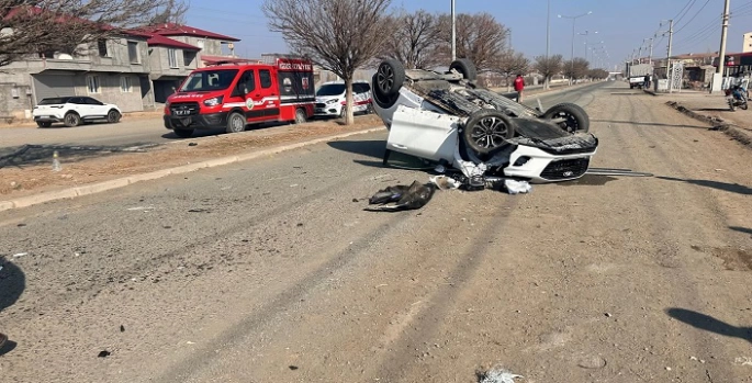 Kadın sürücü Fatma A.’nın kullandığı 76 ABB 989 plakalı otomobilin direksiyon hakimiyetinin kaybolması sonrasında elektrik direğine çarparak ters döndü.