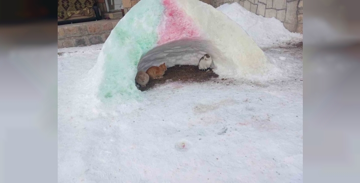 SERHED HABER - İlçede duyarlı vatandaşlar tarafından kardan yapılan barınaklar, hayvanlara adeta sığınak oldu. Soğuktan korunmaları için özenle hazırlanan kar tünellerinin içinde tavuklar ve bir kedi güvenli şekilde barınırken, bu görüntüler yürekleri ısıttı. Barınakların içerisine saman serilerek hayvanların zeminden gelen soğuğa karşı korunması da sağlandı.