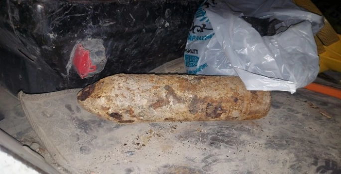 İhbar üzerine gelen polis ekipleri, patlamamış top mermisini güvenlik tedbiri alarak teslim aldı.