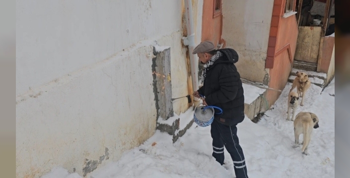 Soğuk havanın etkili olduğu kırsal kesimlerde ise vatandaşlar hayvanlarını beslemekte güçlük çekti. Erzincan’ın Refahiye ilçesine bağlı Kamberağa köyünde yaşayan Baki Kaya, büyükbaş hayvanlarına su temin ettiği şebekenin donması üzerine pürmüzle ısıtarak açmaya çalıştı.