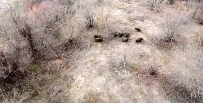 SERHED HABER - GÖRÜNTÜLÜ HABER - Elazığ Hankendi köyü ve Ağın ilçesinde domuz sürüleri görüntülendi. Ağın ilçesinde dron ile görüntülenen domuzlar kırsalda yiyecek ararken, Hankendi köyünde ise yolu keserek karşıya geçti. Domuzlar ardından ormanlık alana girerek gözden kayboldu.