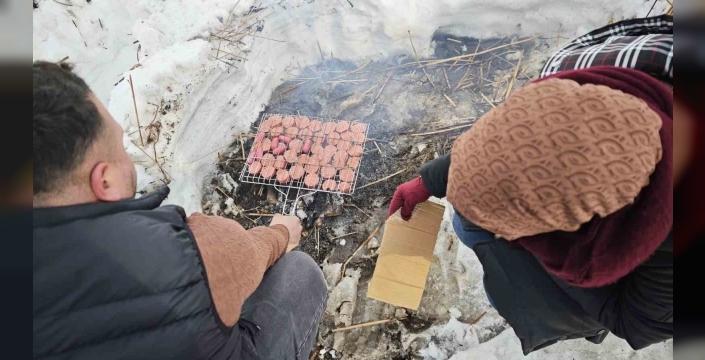 Arkadaşlarıyla birlikte donan Nazik Gölü üzerinde sucuk ekmek keyfi yapan Ercan Baş, "Nazik Gölü donunca ayrı bir güzelliğe bürünüyor. Bizler de hafta sonları arkadaşlarımızla donan Nazik Gölü çevresinde gezmeye, kar üzerinde sucuk ekmek yapıp yemeye geliyoruz. Kar buralara ayrı bir güzellik katıyor. Biz de bu güzel anların keyfini çıkarıyoruz" dedi.
