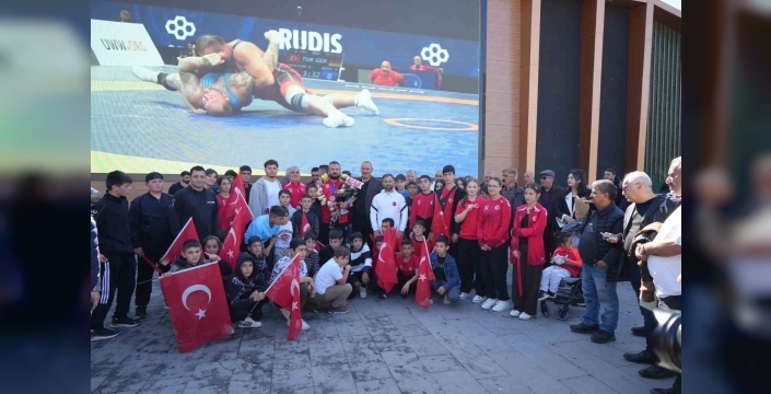 Veteranlar Dünya Güreş Şampiyonası’nda dünya üçüncüsü olarak bronz madalya kazanan Serhat Sarıçiçek memleketi Erzincan’da Cumhuriyet Meydanında düzenlenen coşkulu törenle karşılandı. Davul zurna eşliğinde karşılanan Sarıçiçek, kendisine destek veren ailesine, spor ve güreş camiasına, Erzincan halkına teşekkür etti.
