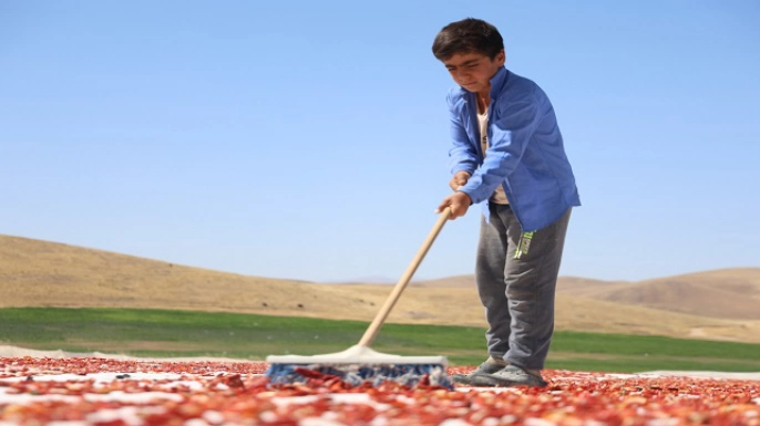 Tarlada çalışanlardan Selami Ağul, "10 yıldır bu işi yapıyoruz. 7 aydır da buradayız. Dikimlerinden çapasına burada üretilen domatesleri bir çocuk gibi büyütüyoruz. Burada ektiğimiz domatesleri kurutuyoruz aynı zamanda hale de satıyoruz. Burada üretilen domatesleri organik bir şekilde ilaçsız yetiştiriyoruz. Kuruttuğumuz domatesleri aynı zamanda yurtdışına ihraç ediyoruz. Sabah güneş doğar doğmaz tarlaya geliyoruz güneş batıncaya kadar çalışıyoruz. Teknoloji gelişiyor. Önceden domatesleri elle kesiyorduk şimdi traktör kesiyor" ifadelerini kullandı.