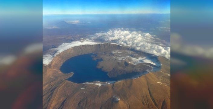 Daha öncesinde uzaydaki astronotların bile birçok kez dikkatini çekmeyi başaran kaldera bu kez uçakla yapılan özel bir uçuş sırasında kilometrelerce yükseklikten görüntülendi.