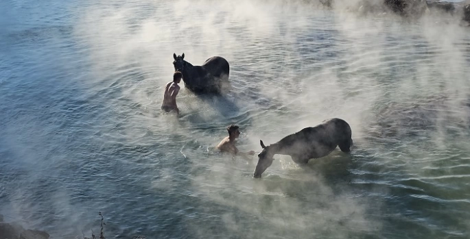 SERHED HABER - Güroymak ilçesine bağlı Budaklı köyünde, köylüler tarafından yıllardır sürdürülen ilginç bir gelenek dikkat çekiyor. Budaklı köyünün çevresinde yer alan kaplıca suları, mineral bakımından oldukça zengin. Köylüler, bu şifalı sulardan yalnızca kendileri değil atları için de yararlanıyor. Sahipleri, atlarını köy kırsalında bulunan doğal kaplıcaların sıcak sularında yıkayarak bakımlarını yapıyor. Bu uygulama, kışın dondurucu soğuklarında bile kesintisiz devam ediyor.