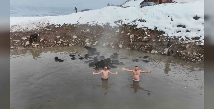 Dondurucu havaya rağmen sıcak suyun rahatlatıcı etkisiyle yüzmenin tadını çıkaran ziyaretçiler, kışın ortasında adeta doğal bir spa deneyimi yaşıyor. Kaplıcanın çevresinde toplanan hayvanların da sıcak sudan faydalanması ise doğayla iç içe tabloyu daha da dikkat çekici hale getiriyor. Bazı vatandaşlar sıcak sudan çıktıktan sonra kar banyosu yaparak yeniden kaplıcaya girerken, bu sıra dışı deneyim hem heyecanlı hem de keyifli anlara sahne oluyor. Dondurucu soğuğa rağmen kaplıcaya girerek sıcak suyun tadını çıkaran vatandaşlar ve mandalar kar manzarası eşliğinde yüzmenin keyfini sonuna kadar yaşıyor.