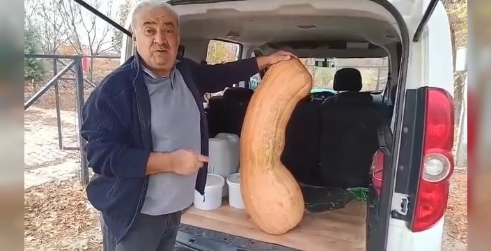 Hasat zamanında bahçesinde mahsulleri kontrol eden vatandaş, birkaç tane kabağın boyunun oldukça büyük olduğunu gördü. Bir tanesini kopararak ağırlığını ve uzunluğunu ölçen vatandaş, kabağın 47 kilogram ağırlığında ve 113 santimetre uzunluğunda olduğunu görünce büyük şaşkınlık yaşadı.