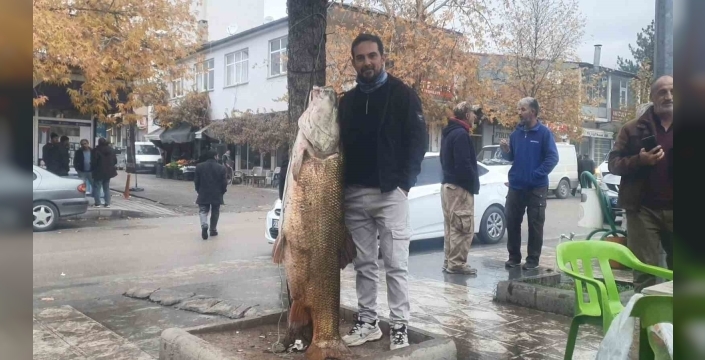 Elazığ’da amatör balıkçılar, Murat Nehri’nde 60 kiloluk dev turna balığı yakaladı.
