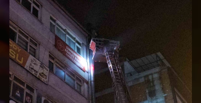 Elazığ’ın Hürriyet Caddesi’nde bulunan bir iş hanının bacasından yükselen dumanlar, çevrede kısa süreli paniğe yol açtı. Durumu fark eden vatandaşların ihbarı üzerine olay yerine Elazığ Belediyesi itfaiye ekipleri sevk edildi. Kısa sürede bölgeye ulaşan ekipler, dumanın azaldığını fark edince tedbir amaçlı inceleme başlattı. Merdiven yardımıyla bacaya çıkan itfaiye ekipleri, yaptıkları kontrollerde herhangi bir yangın emaresine rastlamadı.