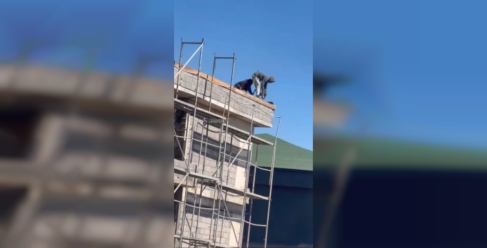Olay, merkez Sürsürü Mahallesi’nde bulunan 10 katlı inşaat halindeki bir binanın çatı kısmında yaşandı. Çatıda çalışma gerçekleştiren işçilerin, herhangi bir önlem almadan iş yaptığı görüldü. İşçiler, canını hiçe sayarak uzunca bir süre çalıştı. O anlar ise bir vatandaşın cep telefonu kamerasına yansıdı.