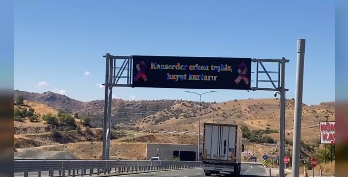 Bu çerçevede Elazığ Karayolları 8. Bölge Müdürlüğü ile iletişime geçen kanser birimi çalışanları, Elazığ -Malatya karayolu üzerinde yer alan Kömürhan Köprüsü’nü meme kanseri temalı pembe renklerle ışıklandırırken, köprünün giriş ve çıkışında yer alan Karayolları VMS dijital ekranlarında ‘Kanserde Erken Teşhis Hayat Kurtarır, Farkında Ol Harekete Geç ve Meme Kanseri Kaderiniz Olmasın’ sloganlarının akışını sağlandı.