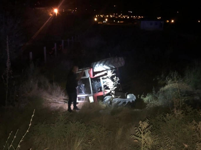 Çarpmanın etkisiyle otomobil kara yoluna, traktör şarampole devrildi.