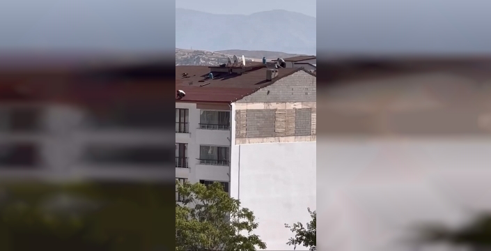 SERHED HABER - Elazığ’ın Sürsürü Mahallesi’nde işçiler, hiçbir güvenlik önlemi almadan 5 katlı bir binanın çatısında çalıştı. Vatandaşlar tarafından cep telefonu kamerasıyla kaydedilen görüntülerde, işçinin metrelerce yüksekte tedbirsiz şekilde çalıştığı görüldü. O anlar yürekleri ağza getirdi.