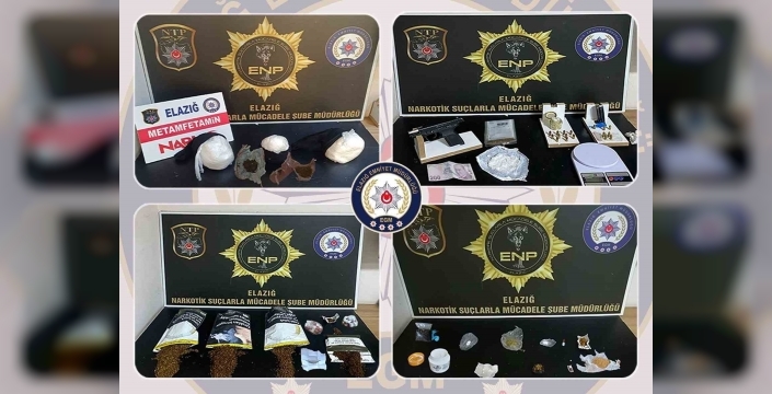 SERHED HABER - Elazığ’da İl Emniyet Müdürlüğü Narkotik Suçlarla Mücadele Şube Müdürlüğü ekipleri tarafından uyuşturucu madde ticareti, sevkiyatı ve kullanımının engellemesine yönelik operasyonlar devam ediyor. Bu çerçevede ekipler, kontrol noktasında şüphelendikleri aracı durdurarak arama yaptı. Narkotik köpeğinin de katıldığı aramada, araç teybinin arkasına gizlenmiş 5 parça halinde 2 kilogram 548 gram metamfetamin maddesi ele geçirildi. Ayrıca ekipler tarafından 27-29 tarihleri arasında yapılan operasyonlarda ise 16 parça halinde 467,68 gram sentetik kannabinoid maddesi, 2 parça halinde 18,65 gram esrar, 52 adet sentetik ecza maddesi, 1 adet ruhsatsız tabanca, tabancaya ait 17 adet fişek ve 1 adet hassas terazi ele geçirildi.