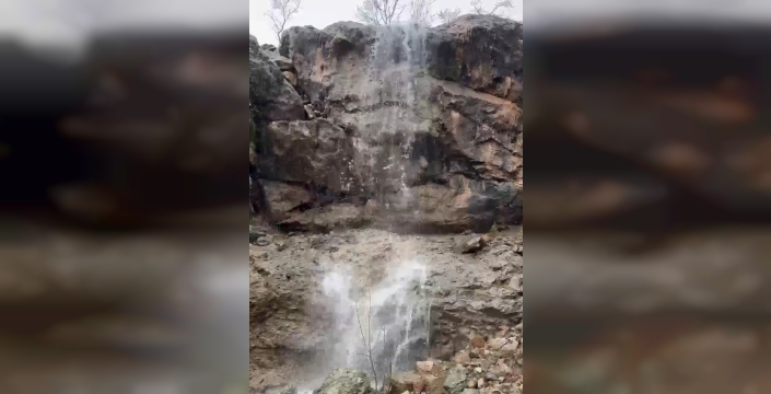 Elazığ’ın Arıcak ilçesine bağlı Kambertepe köyünde yağmur suları kayalıklardan süzülerek adeta doğal şelale oluşturdu.