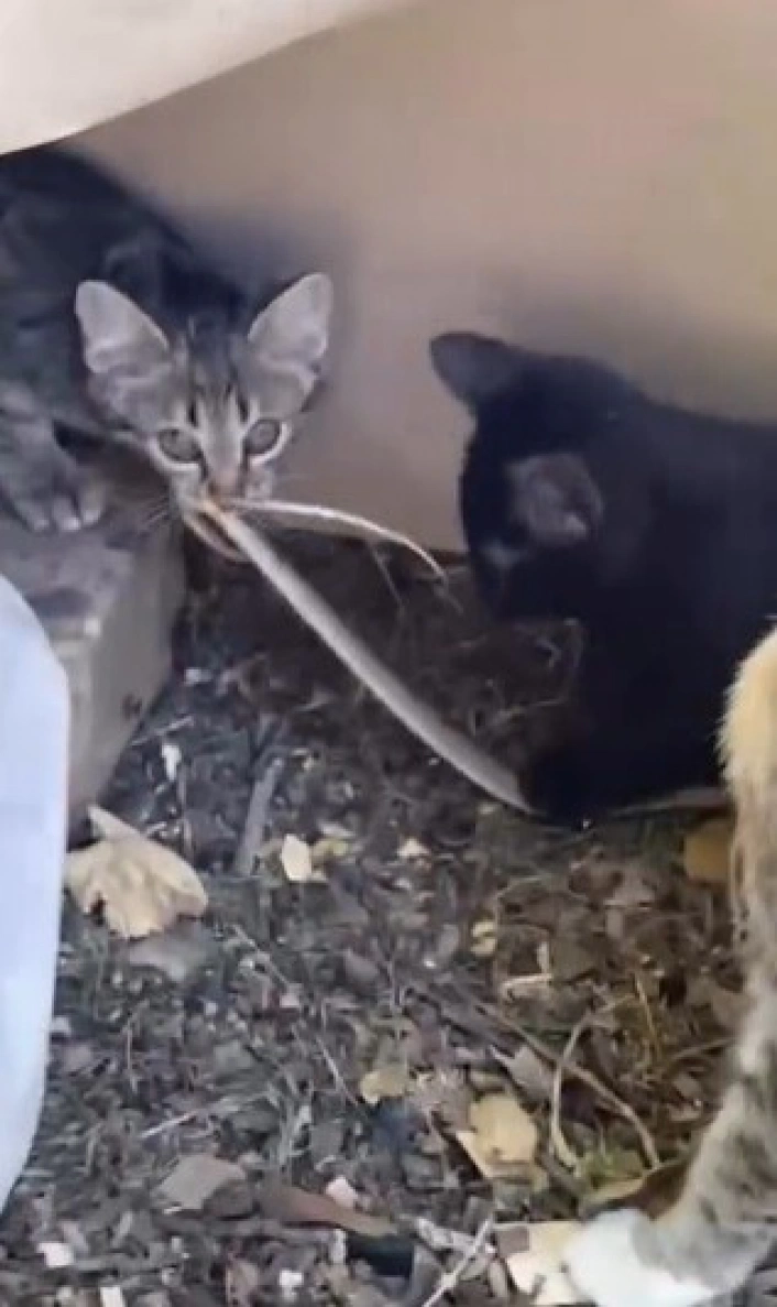 Kedilerin yılanla oynaması, çevrede bulunan bir vatandaş tarafından cep telefonu kamerasıyla kaydedildi. Görüntülerde kedilerin yılanı yakaladıktan sonra etrafında dönerek patileriyle vurduğu, ağzına almaya çalıştığı, yılanın ise sabit durduğu anlar yer aldı.