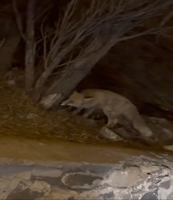 Çevrede yiyecek bulmaya çalışan tilki, gezdikten sonra gözden kayboldu. O anlar bir vatandaşın cep telefonu kamerası ile görüntülendi.