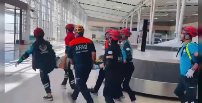 Senaryo gereği deprem meydana geldi, önce "Çök-Kapan-Tutun" uygulandı, ardından havalimanı binasında bulunan yolcu ve personelin güvenli şekilde tahliyesi sağlandı. Ekipler arama-kurtarma ve sağlık müdahalesi konularında koordineli bir çalışma ortaya koydu.
