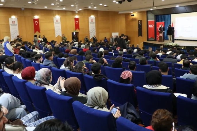 Bakan Yardımcısı Eminoğlu, Muş Alparslan Üniversitesi Rektörü Prof. Dr. Mustafa Alican’ı makamında ziyaret ettikten sonra üniversitede düzenlenen “Bakan Yardımcımız Öğrencilerle Buluşuyor” programına katıldı. Saygı duruşunda bulunulması ve İstiklal Marşı’nın okunmasıyla başlayan programda Eminoğlu, öğrencilere hitap etti.