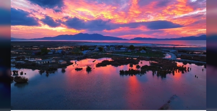 Akşam saatlerinde güneşin ufukta kaybolmaya başlamasıyla birlikte gökyüzü, tabloya dönüştü. Kızıl ve altın sarısı tonların hakim olduğu bu anlarda, ışık oyunları göl yüzeyine yansıyarak eşsiz bir görsel şölen sundu. Görüntüleri kaydeden doğa fotoğrafçısı Dağ, dron ile göl üzerinde alçak ve yüksek irtifada gezdirerek manzarayı farklı açılardan kaydetti. Özellikle su yüzeyindeki yansımaların netliği ve gökyüzündeki bulutların renklerle dansı, dron kadrajına adeta bir sanat eseri gibi yansıdı.