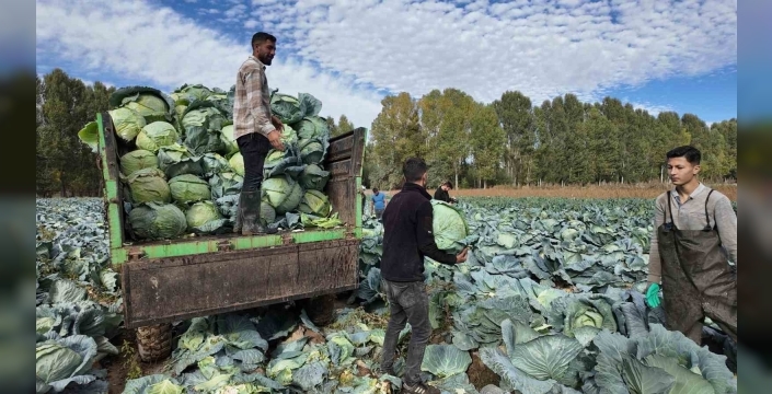 SERHED HABER - Büyüklüğüyle dikkat çeken ve bölge ekonomisine katkı sunan Erciş lahanasının hasadına başlandı. İlçede 500 çiftçinin yaklaşık bin 700 dekar alanda ürettiği lahananın her yıl haziran ayında ekimi yapılıyor. Ekim ayında hasadı yapılan lahana, çiftçilerin kazanç kapısı oluyor. Erciş’te geniş bir alanda ekimi yapılan; Van, Bitlis, Ağrı ve Iğdır gibi çevre il ve ilçelere de gönderilen lahana büyüklüğüyle dikkat çekiyor. Tanesi 90 ila 100 TL arasında satılan lahananın sarması ve turşusu yapılıyor.