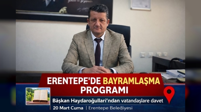 SERHED HABER- Erentepe Belediyesi tarafından Ramazan Bayramı münasebetiyle gerçekleştirilecek bayramlaşma programı, 20 Mart Cuma günü saat 09.00 ile 11.45 arasında belediye binasında yapılacak. Programa tüm vatandaşların davetli olduğu bildirildi.