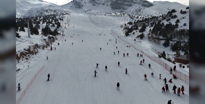 Ergan’da kayakçılar kayak keyfi yaşıyor. Kayak yapmayanlar ise aileleriyle birlikte Ardıçlı gölü manzarasının tadını çıkardı.