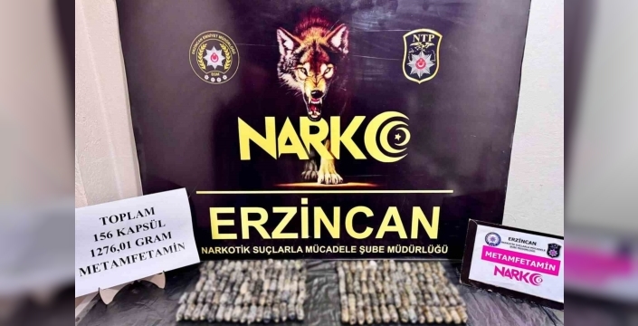 Erzincan İl Emniyet Müdürlüğü ekiplerince şüphe üzerine bir şehirlerarası yolcu otobüsü durduruldu. Uluslararası uyuşturucu madde ticareti yaptığı değerlendirilen şahısların üzerinde ve otobüste arama yapıldı. Yapılan aramalarda, T.E., V.A.K. ve T.E. isimli şahıslara ait 156 adet kapsül içerisinde toplam 1 kilo 276,01 gram metamfetamin maddesi bulundu.
