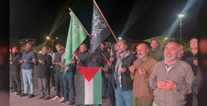 Cumhuriyet Meydanı’nda toplanan kalabalık, ellerinde Filistin bayraklarıyla meydana gelerek, alana kurulan dev ekrandan Gazze’de yaşanan son gelişmeler canlı olarak takip etti. Program boyunca Kur’an-ı Kerim tilaveti, ilahiler ve Filistin direnişine dair konuşmalar yapıldı.