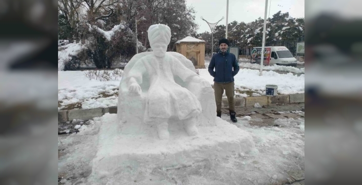 Erzincan’da kar yağışını sanata dönüştüren Güzel Sanatlar Fakültesi mezunu İsmail İşler, klasik kardan adam yerine kardan padişah yaptı.