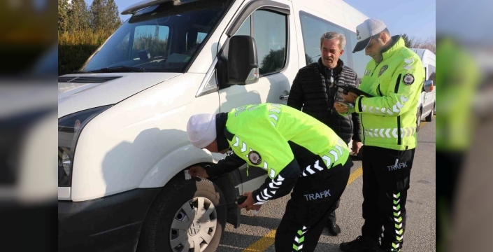 SERHED HABER - Denetimlerde servis araçlarının kış şartlarına uygun lastik kullanıp kullanmadığı kontrol edilirken, sürücülere güvenli sürüş kuralları hakkında bilgilendirme yapıldı.