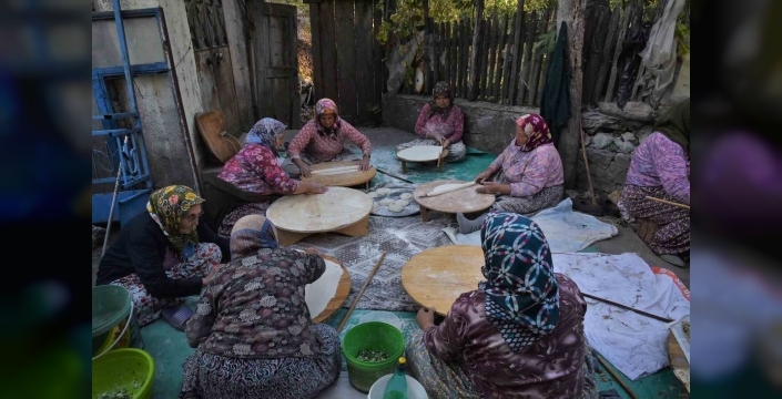 Kış hazırlığı telaşı yaşayan kadınlar imece usulü kışlık yufkalarını hazırlıyor. Günün ilk ışıklarıyla hazırlıklara başlayan kadınlar, her gün bir kişinin kışlık yufkasını pişiriyor. Akşama kadar süren pişirme işleminin ardından yufkalar, kurutulmaya bırakılıyor. Kuruyan yufkalar, soğuk kış günlerinde ekmek veya börek olarak tüketiliyor. El yapımı yufkalarla pişirilen börekler kış sofralarına ayrı lezzet katıyor.