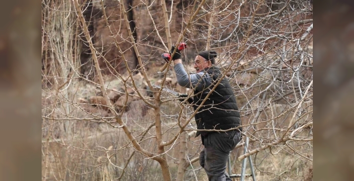 Erzurum’un Olur ilçesi Ormanağzı köyünde, havaların ısınmasıyla ağaç budama, çapalama ve bahçe temizliği çalışmalarına başlandı.