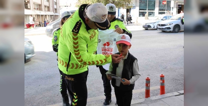 Vatandaşlara emniyet kemeri, seyir halindeyken cep telefonuyla ilgilenmeme, hız sınırına uyma ve yayaların geçiş üstünlüğü gibi konularda bilgi veren ve broşür dağıtan polisler ilgi odağı oldu.