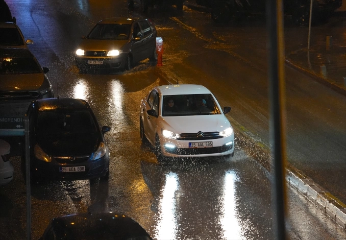 Sağanak, cadde, sokak ve kaldırımlarda su birikintilerine neden oldu.