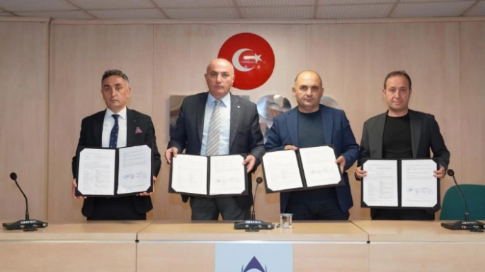 ETSO Yönetim Kurulu Başkanı ve TOBB Yönetim Kurulu Üyesi Saim Özakalın, İŞKUR İl Müdürü Abdulkadir Mutlu, ETSO Meclis Başkanı Gökhan Yılmaz ve Doğu Anadolu Sigorta Acenteleri Derneği Başkanı Serkan Daş protokolü katılımcıların huzurunda imzaladılar.