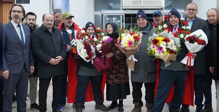 Fransa’dan altı madalya ile Erzurum’a dönen Bingül kardeşler için havalimanında karşılama töreni düzenlenirken alanda ETÜ Rektörü Prof. Dr. Bülent Çakmak’ın yanı sıra çok sayıda akademisyen ve öğrenci yer aldı.