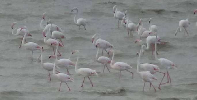 SERHED HABER - Her yıl İran'ın Urmiye Gölü'nden gelerek Van Gölü Havzası'nda bir süre konakladıktan sonra Afrika ülkelerine göç eden flamingolar, İpekyolu ilçe sınırında yer alan Erçek Gölü'ne gelmeye başladı. Zengin kuş popülasyonuyla kuş cenneti olarak anılan Erçek Gölü çevresinde görülen flamingolar, kıyı şeridini adeta beyaza bürüdü. Türkiye`deki yaklaşık 450 kuş türünden yaklaşık 250'sine ev sahipliği yapan Van Gölü havzasında görüntülenen flamingolar, görüntüleriyle göz kamaştırıyor. Havanın ısınmasıyla birlikte Van Gölü Havzası'nda birçok noktaya gelen flamingolar kasım ayına kadar havzada konaklıyor.
