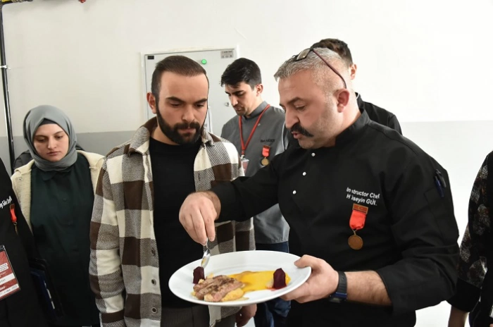 SERHED HABER - MEB Mesleki ve Teknik Eğitim Genel Müdürlüğü İdari ve Mali İşler Daire Başkanı Murat Gülşen, İl Milli Eğitim Müdürü Yakup Yıldız, Aziziye İlçe Milli Eğitim Müdürü Nurullah Yavilioğlu, İl Milli Eğitim Şube Müdürü Bünyamin Pehlivan, okul müdürleri, öğretmen ve öğrencilerin katılımlarıyla Aziziye Ilıca Çok Programlı Anadolu Lisesi'nde gerçekleştirilen Gastronomi Festivali ve Aşçılık Yarışması Bölge Finalinde öğrencilerin yaptığı yemekler, her biri alanında uzman 4 kişilik jüri tarafından değerlendirildi.
