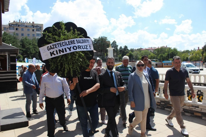 SERHED HABER - Pusula Gazetesi Genel Yayın Koordinatörü Sevda Güneş İncesu ile Yazı İşleri Müdürü Cihat İncesu, Kuzeydoğu Anadolu Kalkınma Ajansı’nda (KUDAKA) saldırıya uğramıştı. Meslektaşlarına yapılan saldırıyı kınayan ve Havuzbaşı Kent Meydanı’nda toplanan medya mensupları daha sonra KUDAKA binasına kadar yürüdü ve siyah çelenk bıraktı. Burada alkışlarla meslektaşlarına yapılan saldırıyı protesto eden gazeteciler daha sonra sessiz bir şekilde dağıldı.