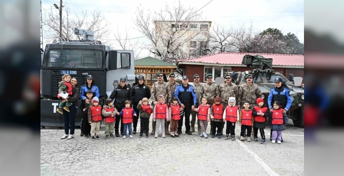 Erzincan Emniyet Müdürlüğü koordinesinde, 10 Nisan Polis Haftası dolayısıyla düzenlenen etkinlikte, anaokulu öğrencileri polis birimlerini ziyaret etti.